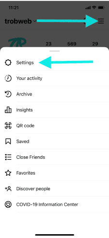 توجه بماشرة إلى البروفايل الخاص بك، ثم انقر على خيار الثلاث أشرطة الموجودة في الجانب العلوي. من القائمة التي ظهرت، حدد الإعددات “Settings”.