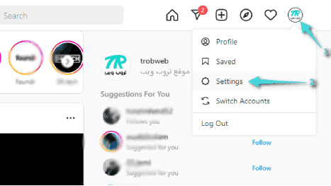 انقر على الصورة المصغرة لحسابك الموجودة في الجانب العلوي، ثم من القائمة التي ظهرت، اضغط على خيار الإعدادات “Settings”.