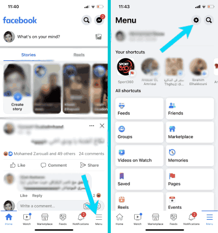 اضغط على خيار القائمة (الثلاث أشرطة) في الجزء السفلي من الصفحة الرئيسية، ثم انقر على رمز الترس في الجزء العلوي من أجل الدخول إلى الإعدادات.